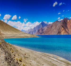 Visit Pangong lake; the world’s highest saltwater lake that changes its color from shades of blue to green to red.